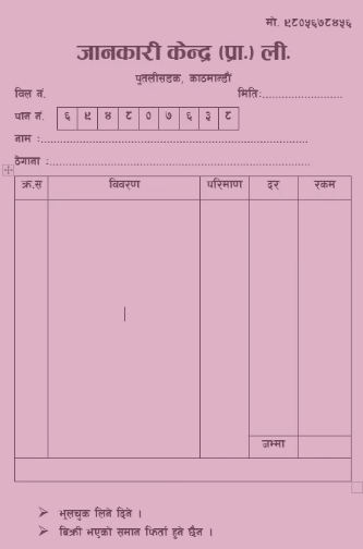 In Simple Terms: if your business is too small to require VAT registration, you use a PAN bill for every sale. It acts as legal proof of the transaction for income tax purposes under the Income Tax Act 2058.